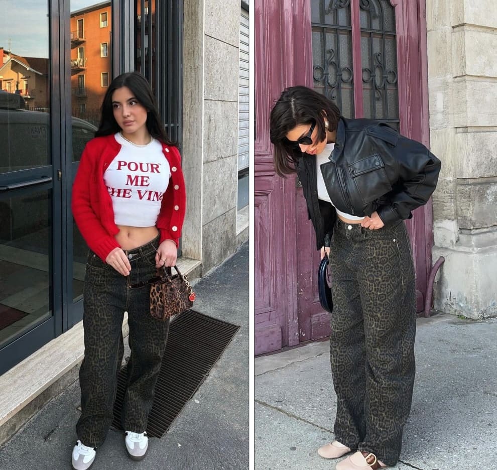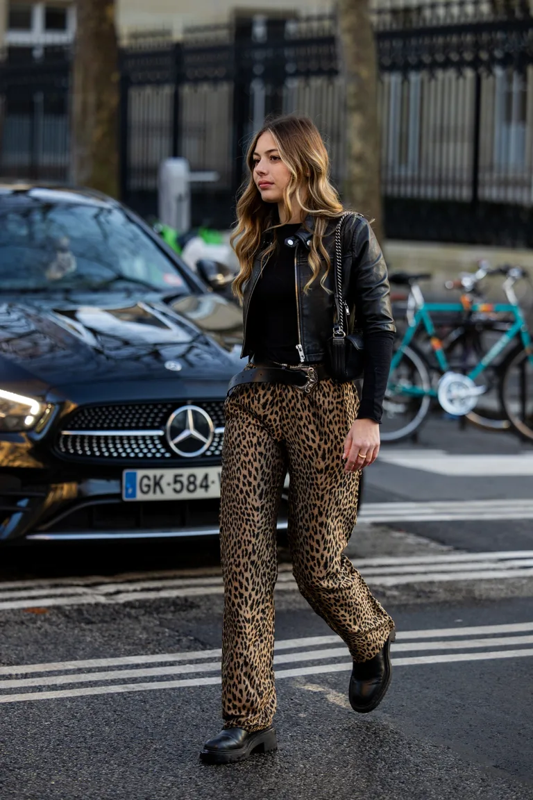 blouson jean imprime leopard
