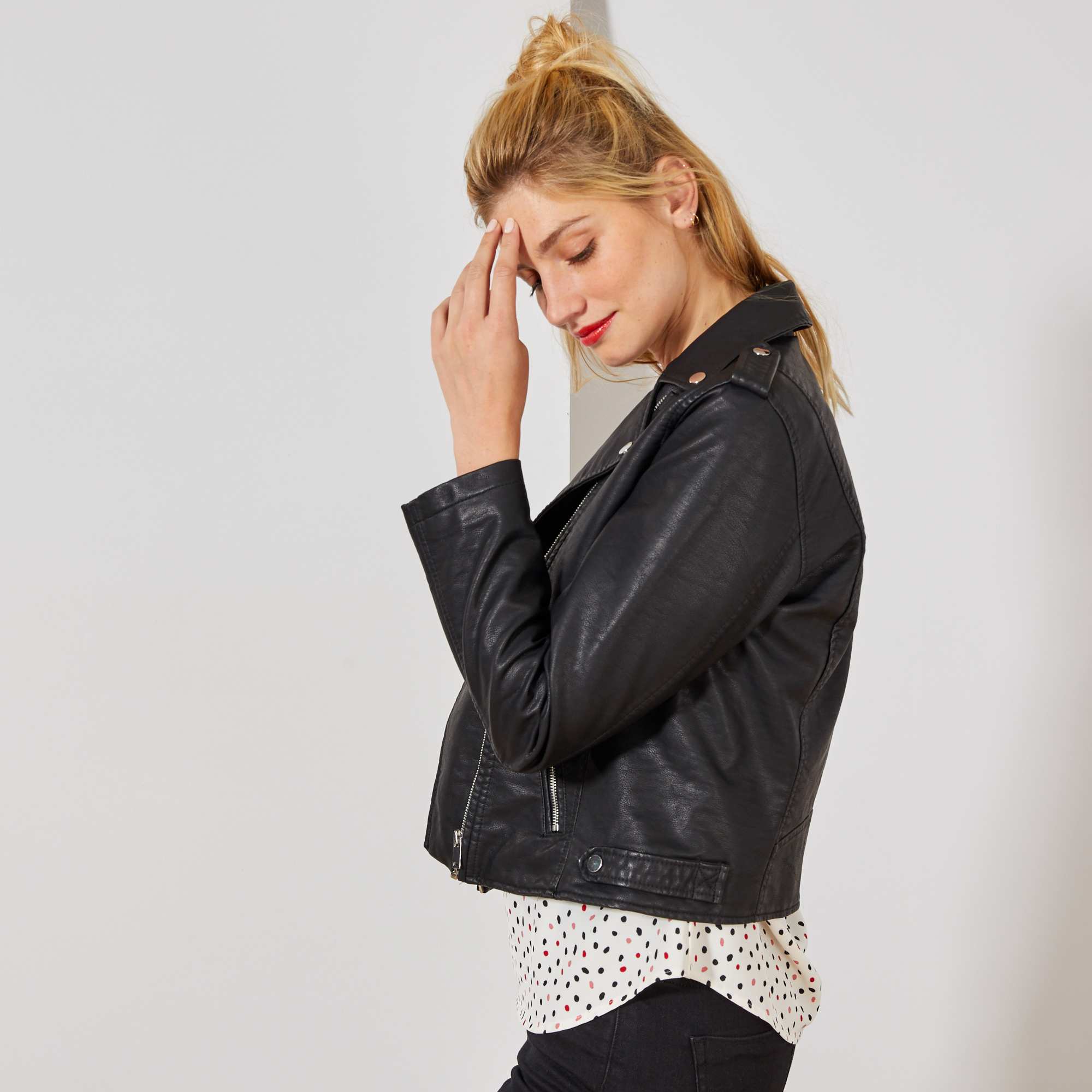 blouson motard rose
