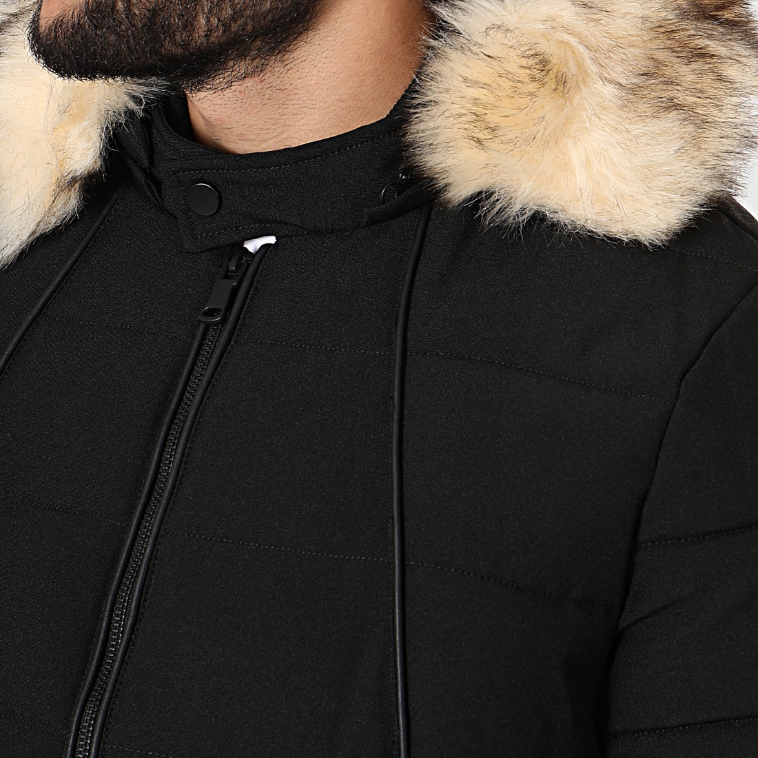 blouson noir capuche fourrure femme