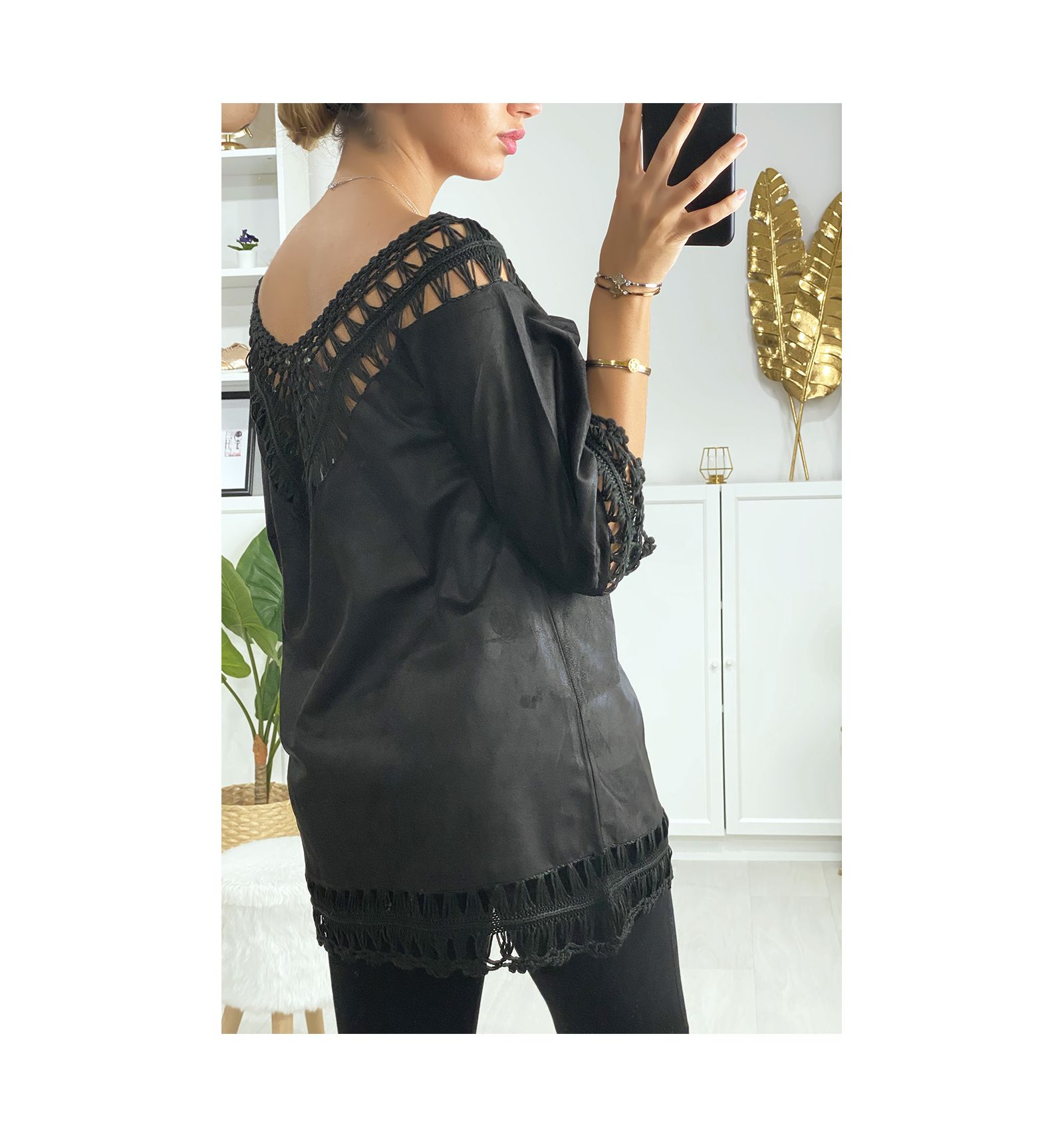 blouson suedine noir femme