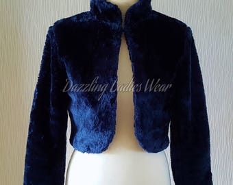 bolero fourrure bleu marine
