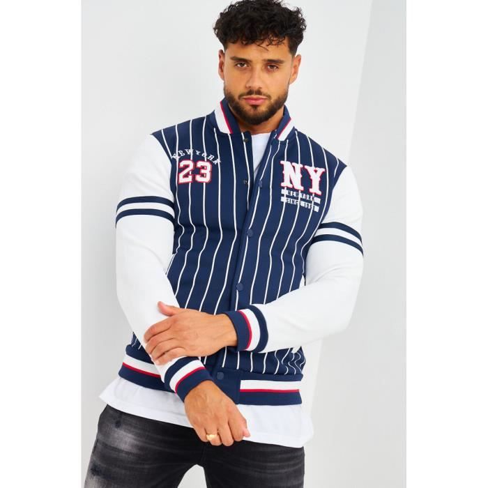 bomber bleu et blanc