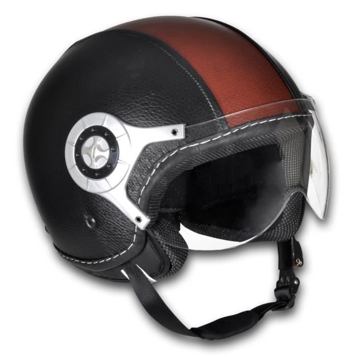 casque moto cuir marron