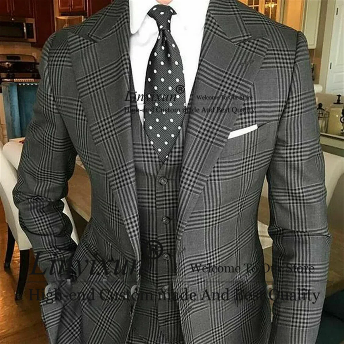 costume a carreaux gris homme