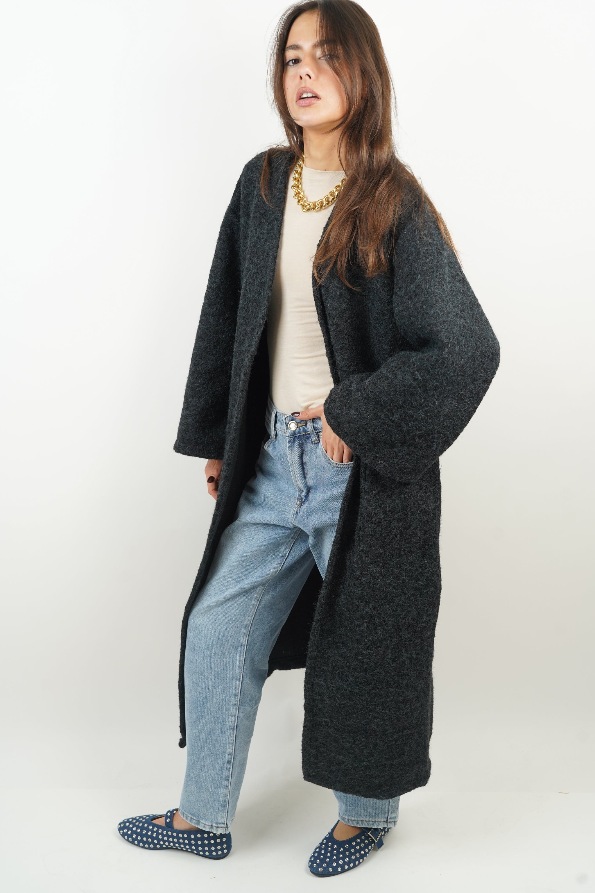gilet en laine long noir