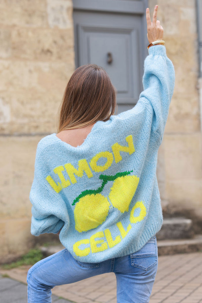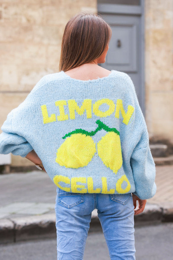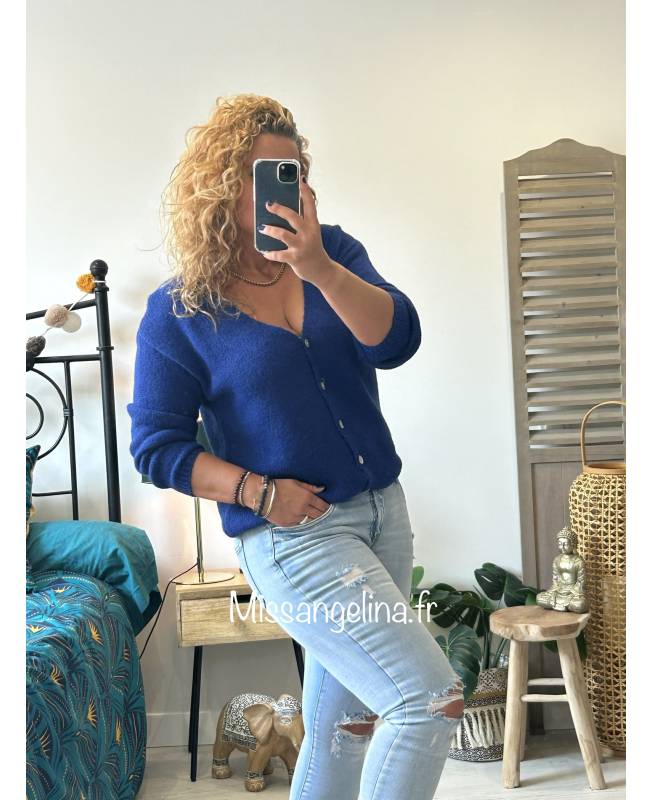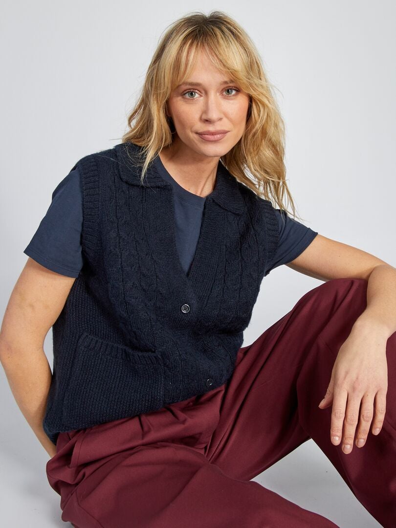 gilet grosse maille bleu