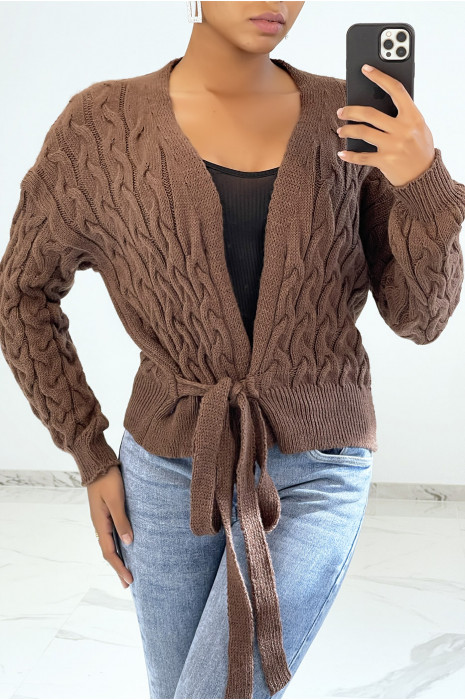 gilet grosse maille marron