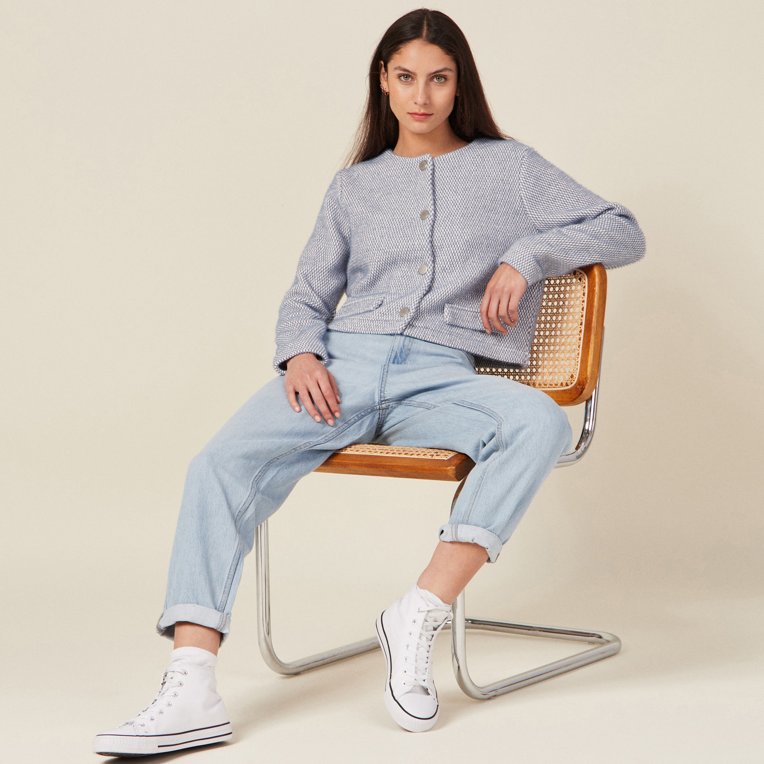 gilet laine ecru femme