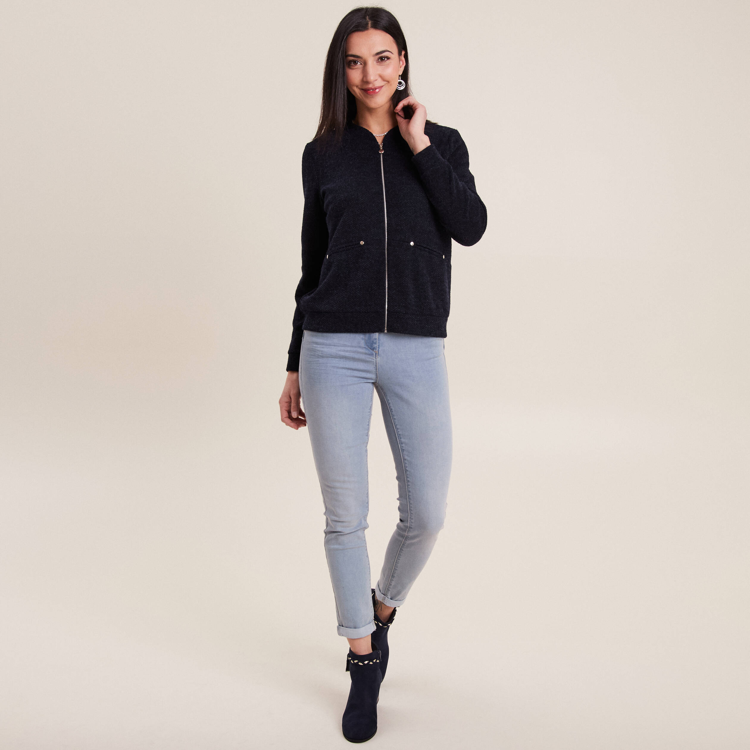 gilet laine femme grosse maille bleu marine