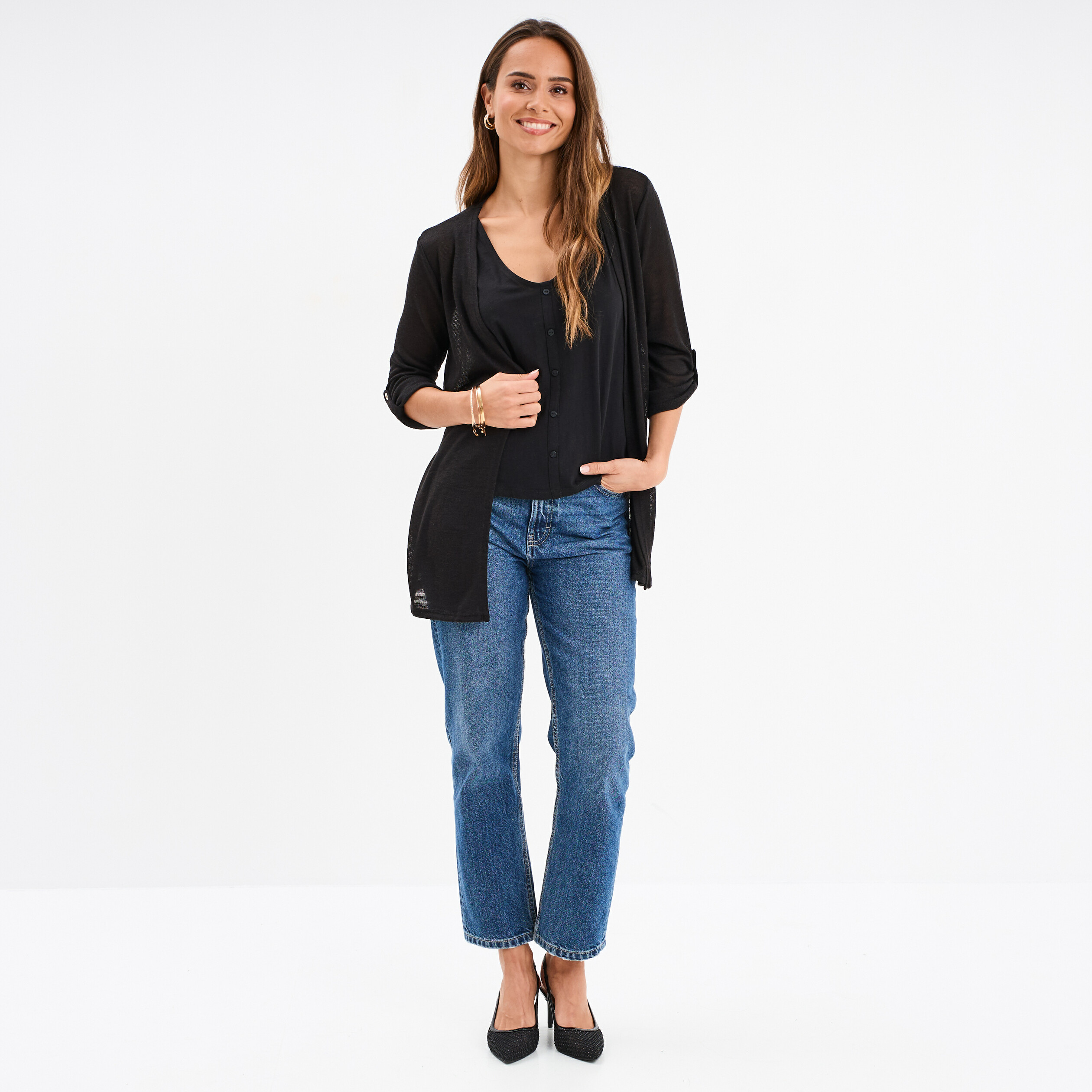 gilet long fin femme