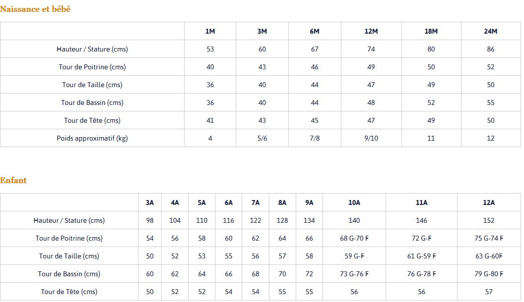 guide des tailles isaco