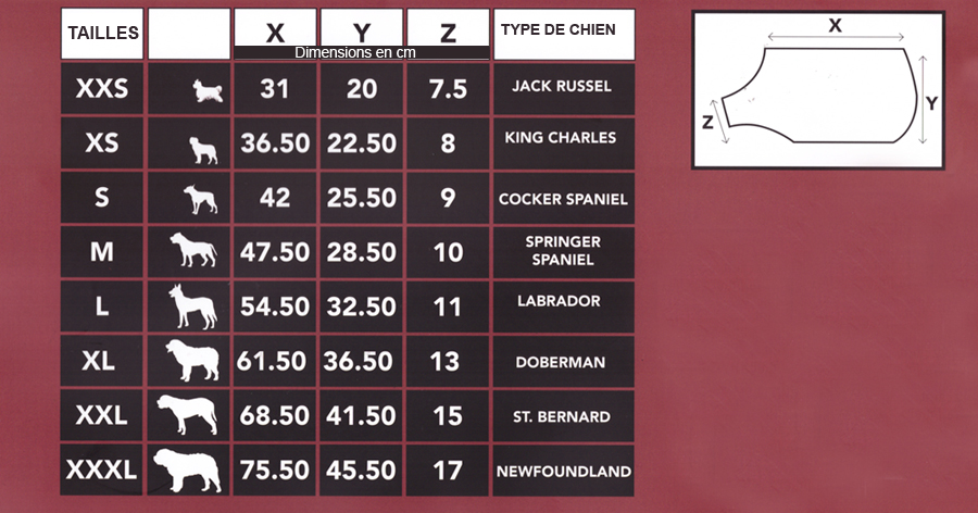 guide des tailles manteau chien