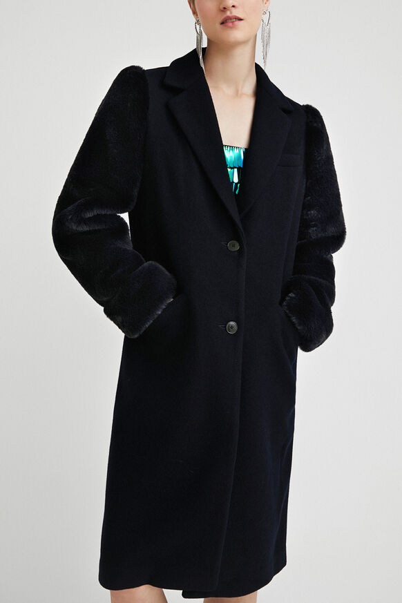 manteau desigual fausse fourrure