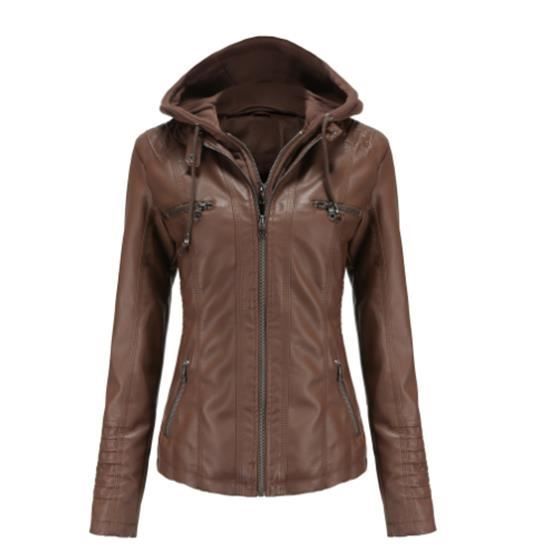 manteau en cuir avec capuche femme