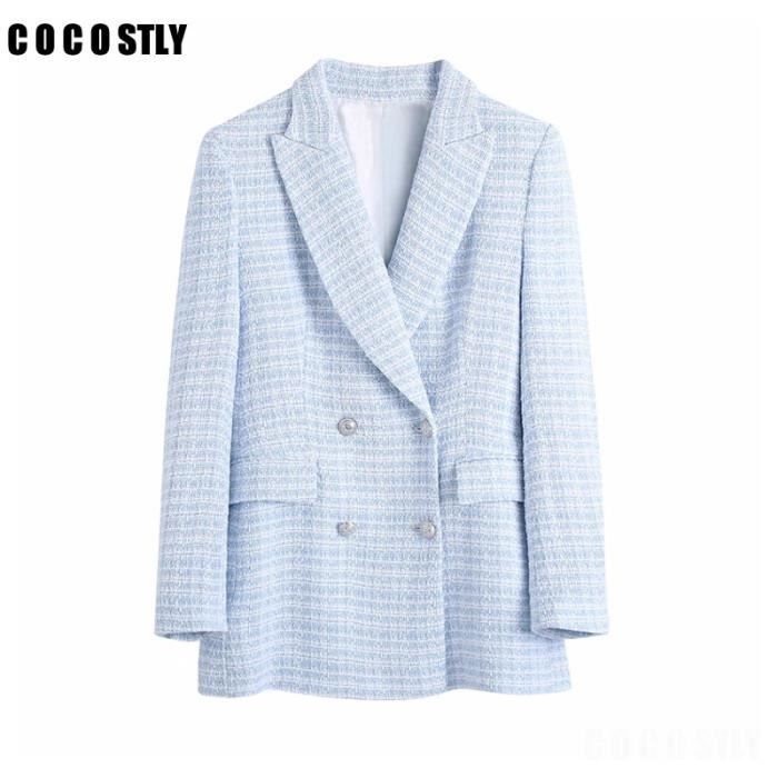 manteau femme tweed bleu