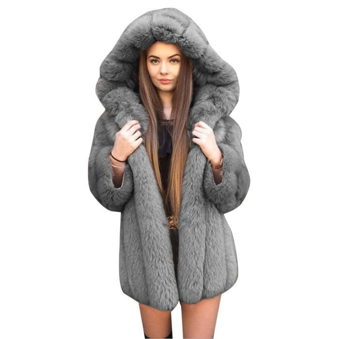 manteau gris fourrure femme