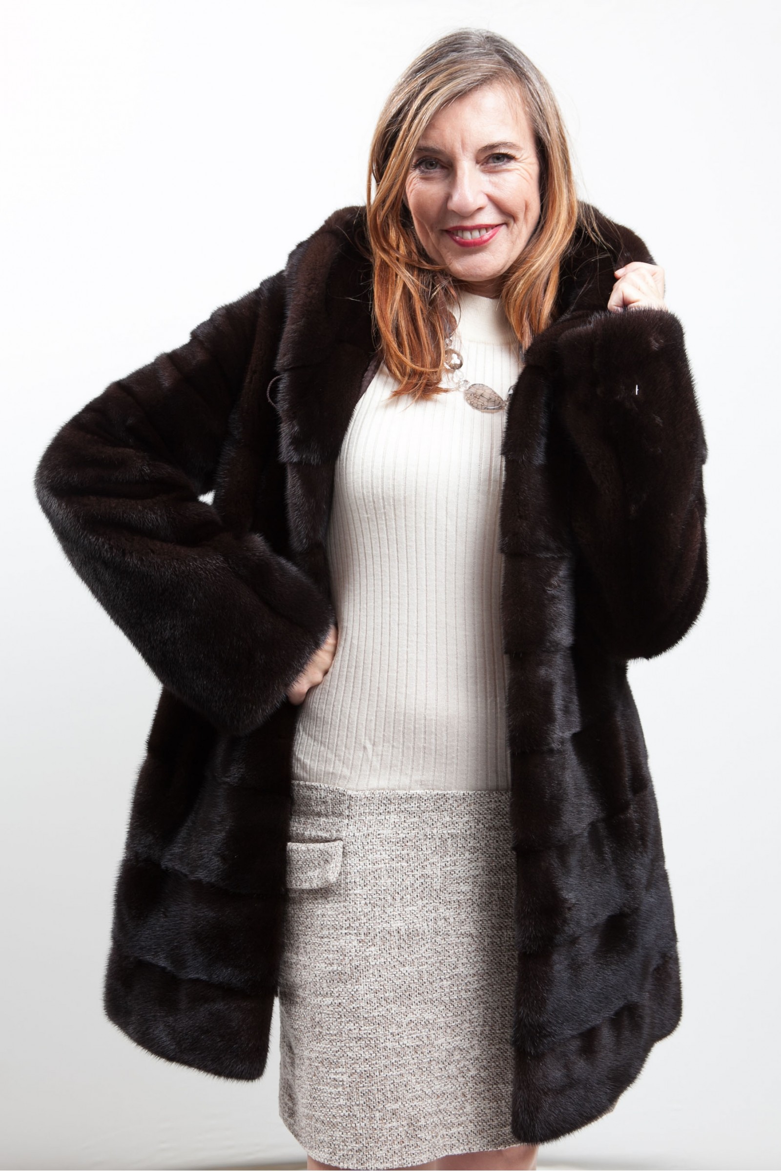 manteau vison avec capuche