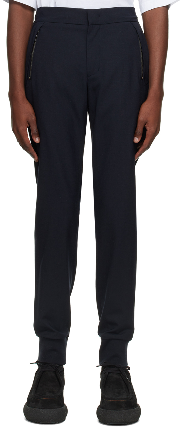 pantalon bleu marine veste grise