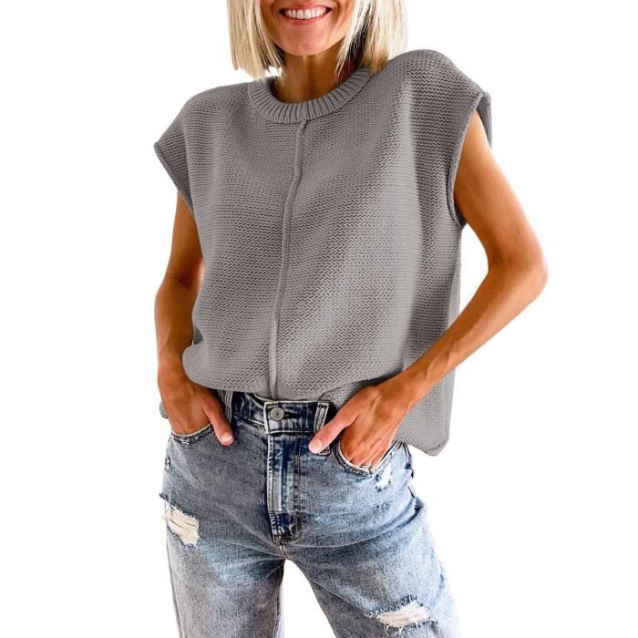 pull sans manche tricot femme