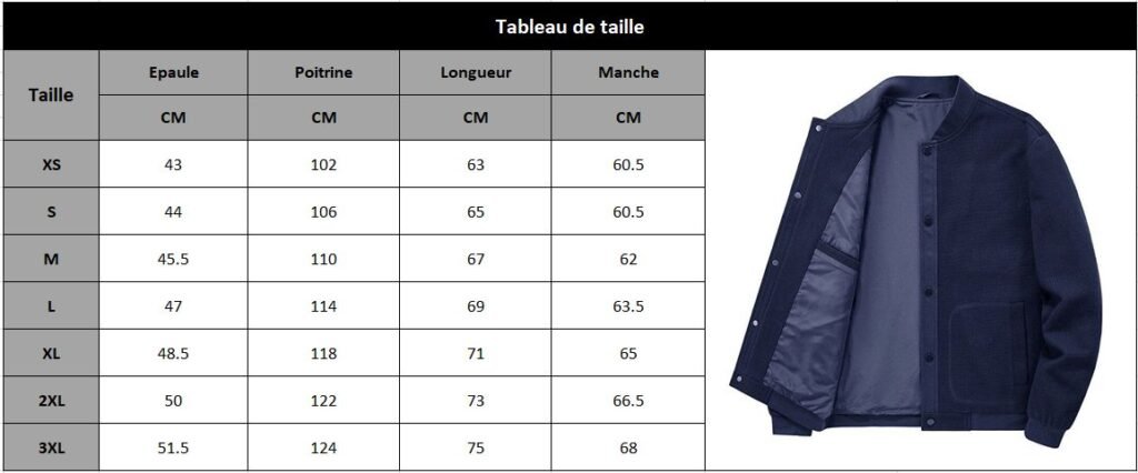 taille 36 veste homme