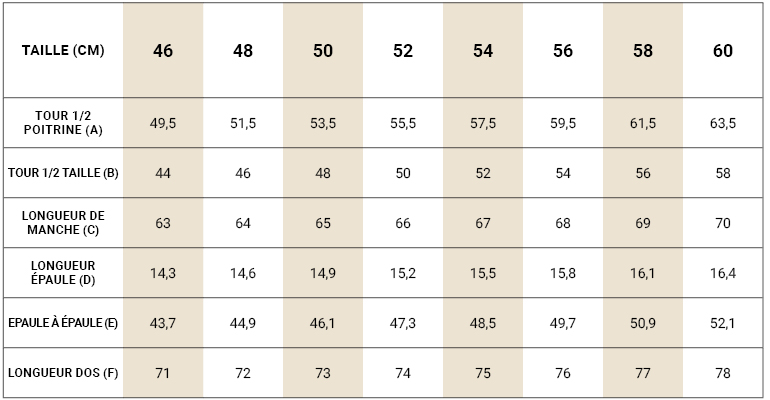 taille 50 veste costume correspondance