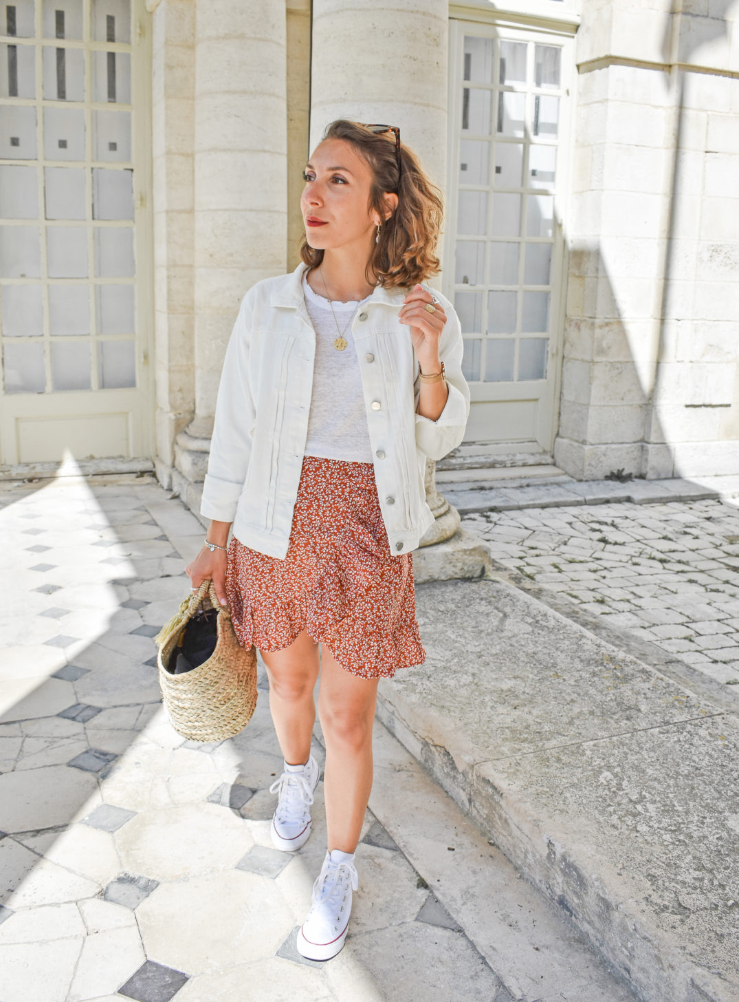 tenue avec veste en jean blanche