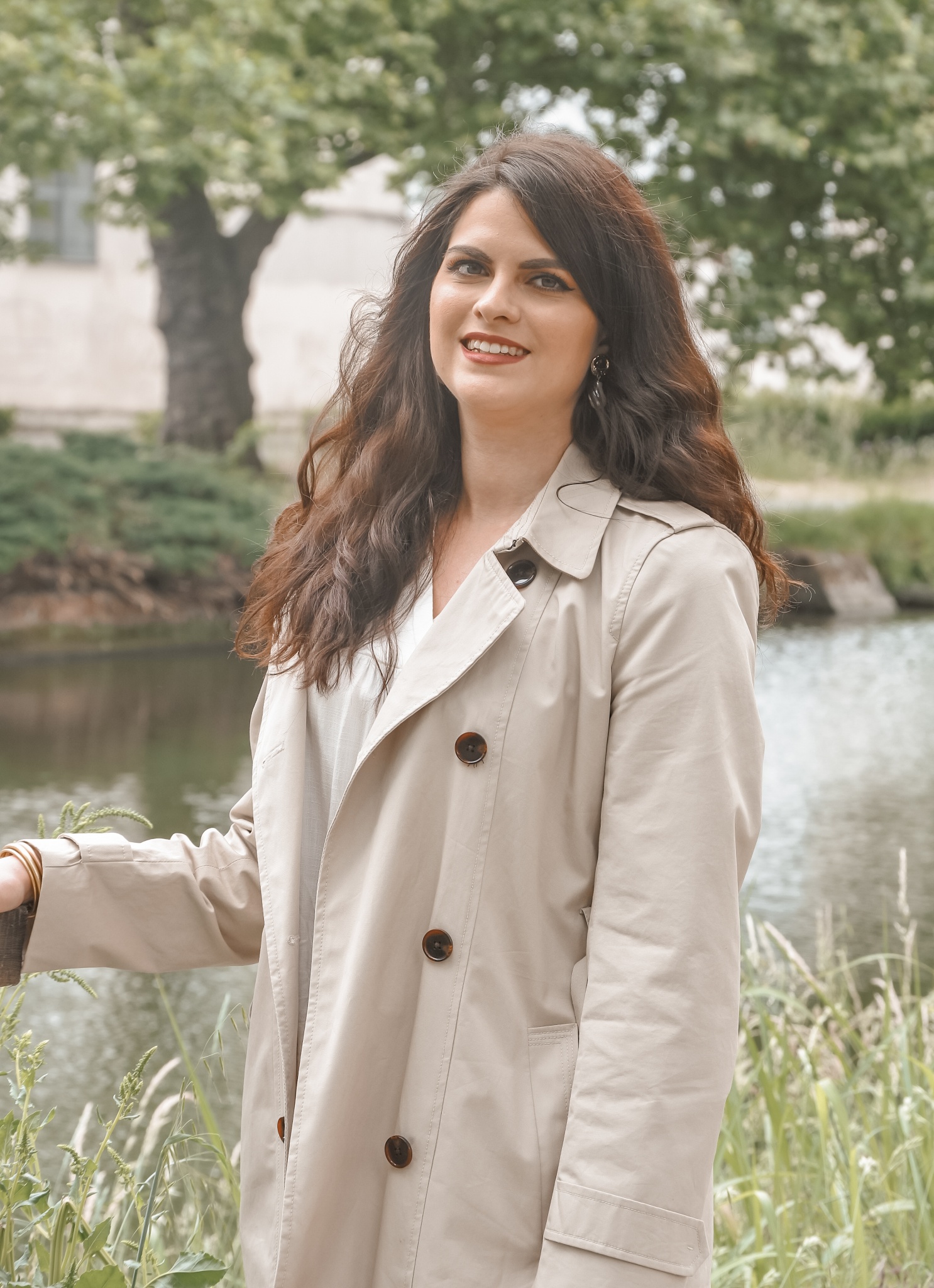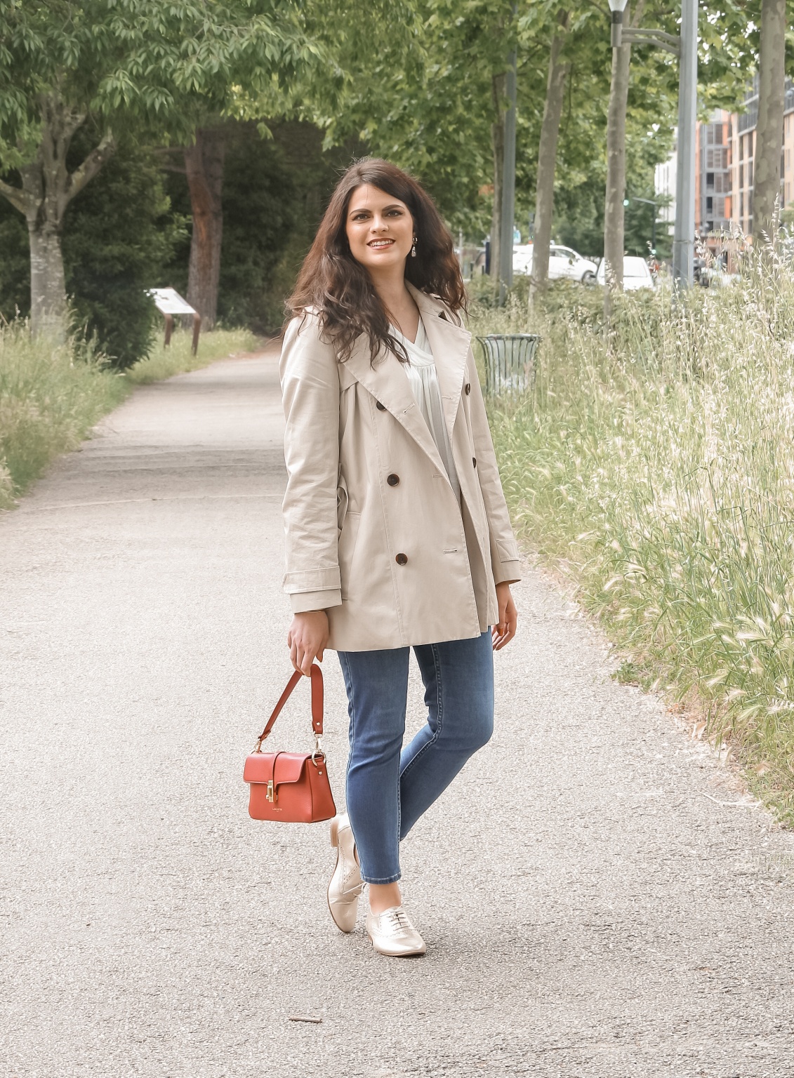 trench beige et cuir
