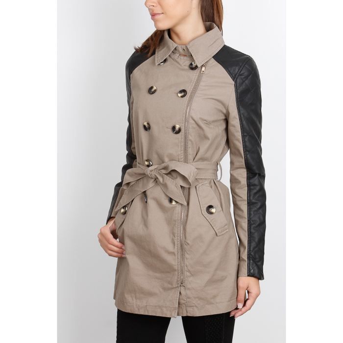 trench bi matiere femme
