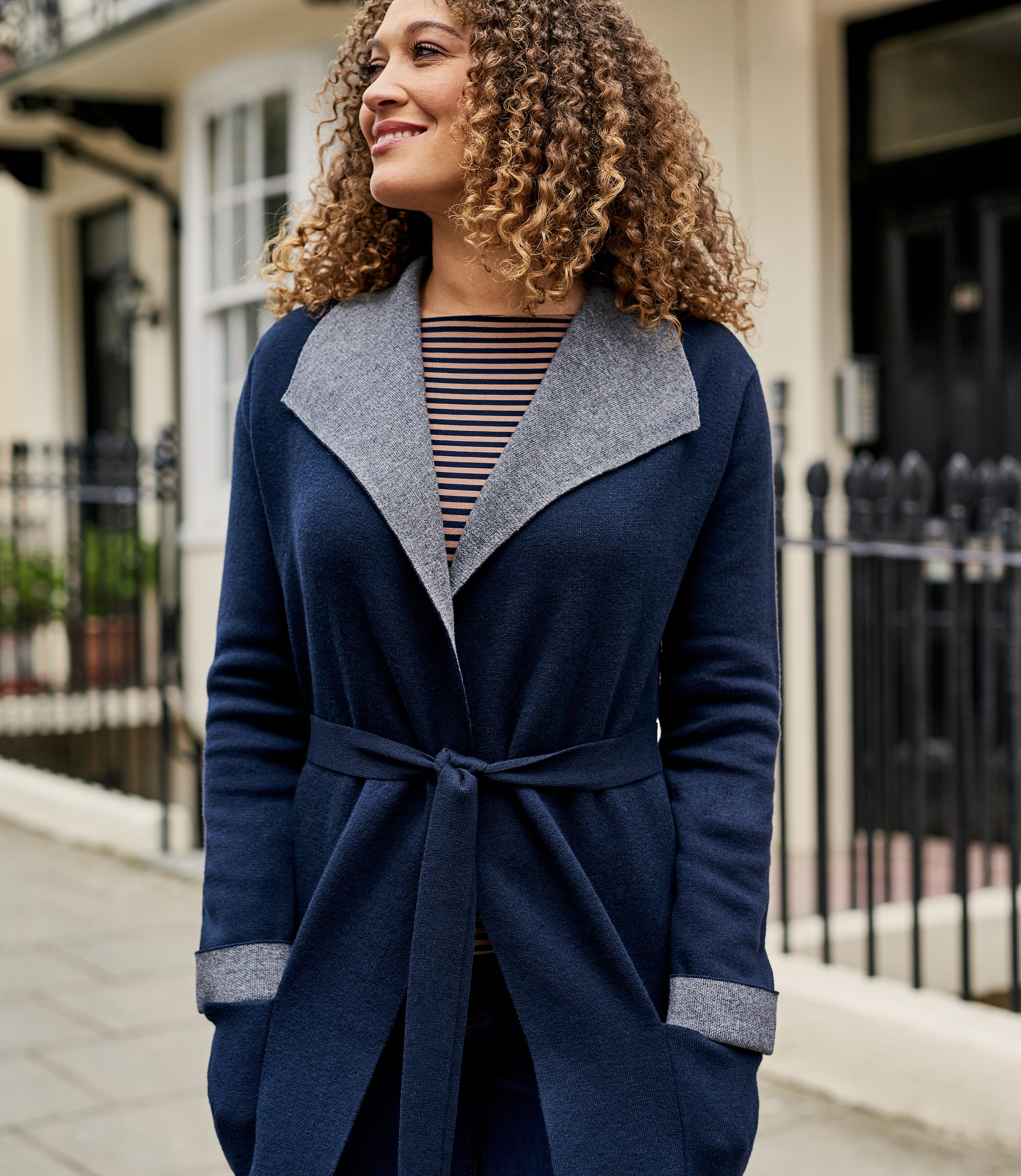 veste bleu et blanche femme