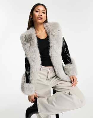 veste en cuir noir avec fourrure