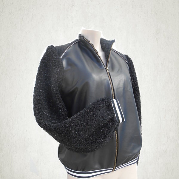 veste en cuir noir fourrure
