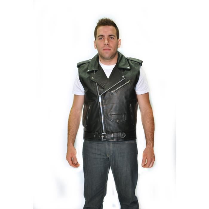 veste en cuir sans manche biker