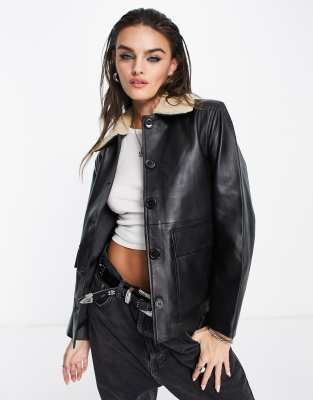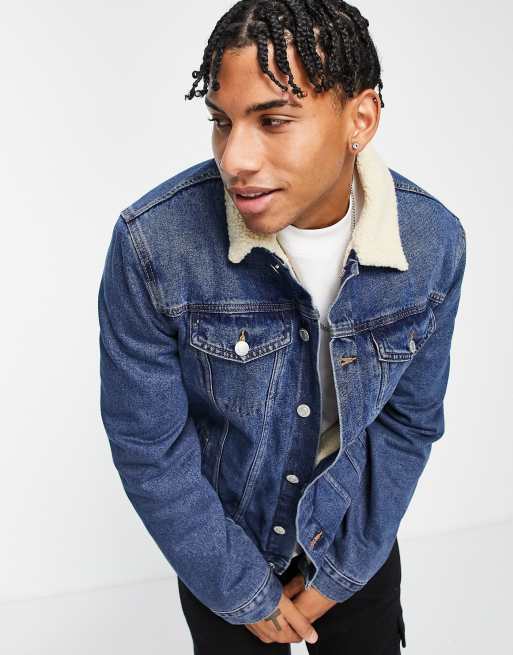 veste en jean avec col imitation peau de mouton