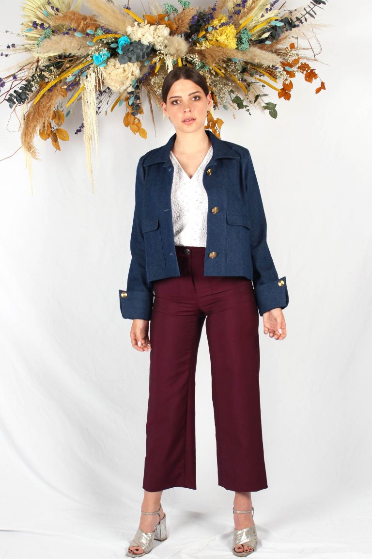 veste en jean courte bleu fonce