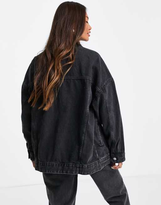 veste en jean noir mango