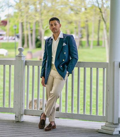veste en tweed bleu marine