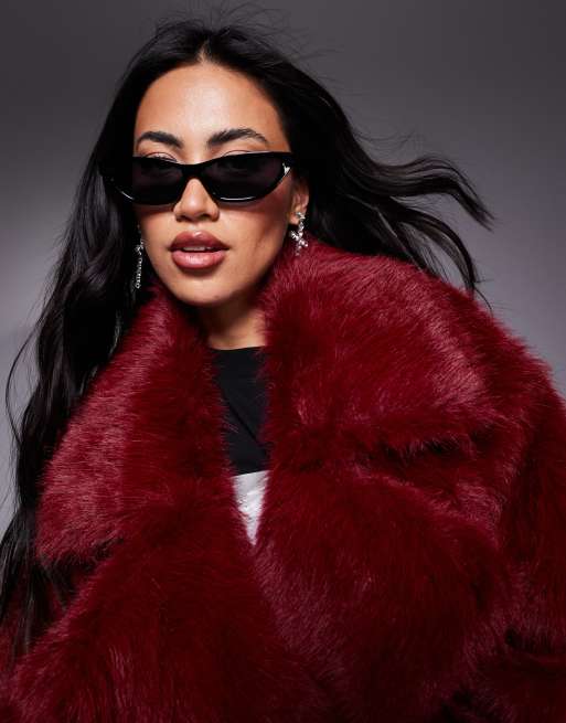 veste fausse fourrure bordeaux