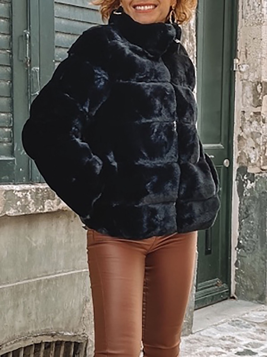 veste femme fausse fourrure noire
