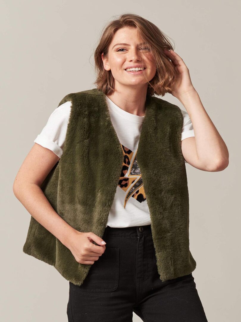veste fourrure kaki femme