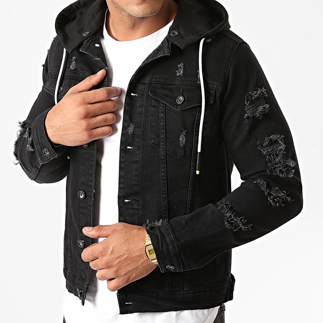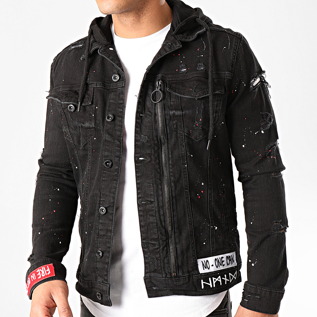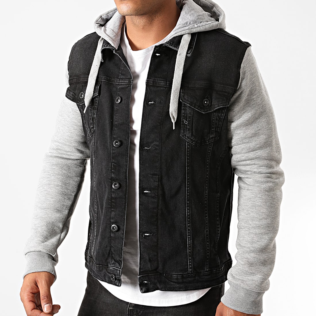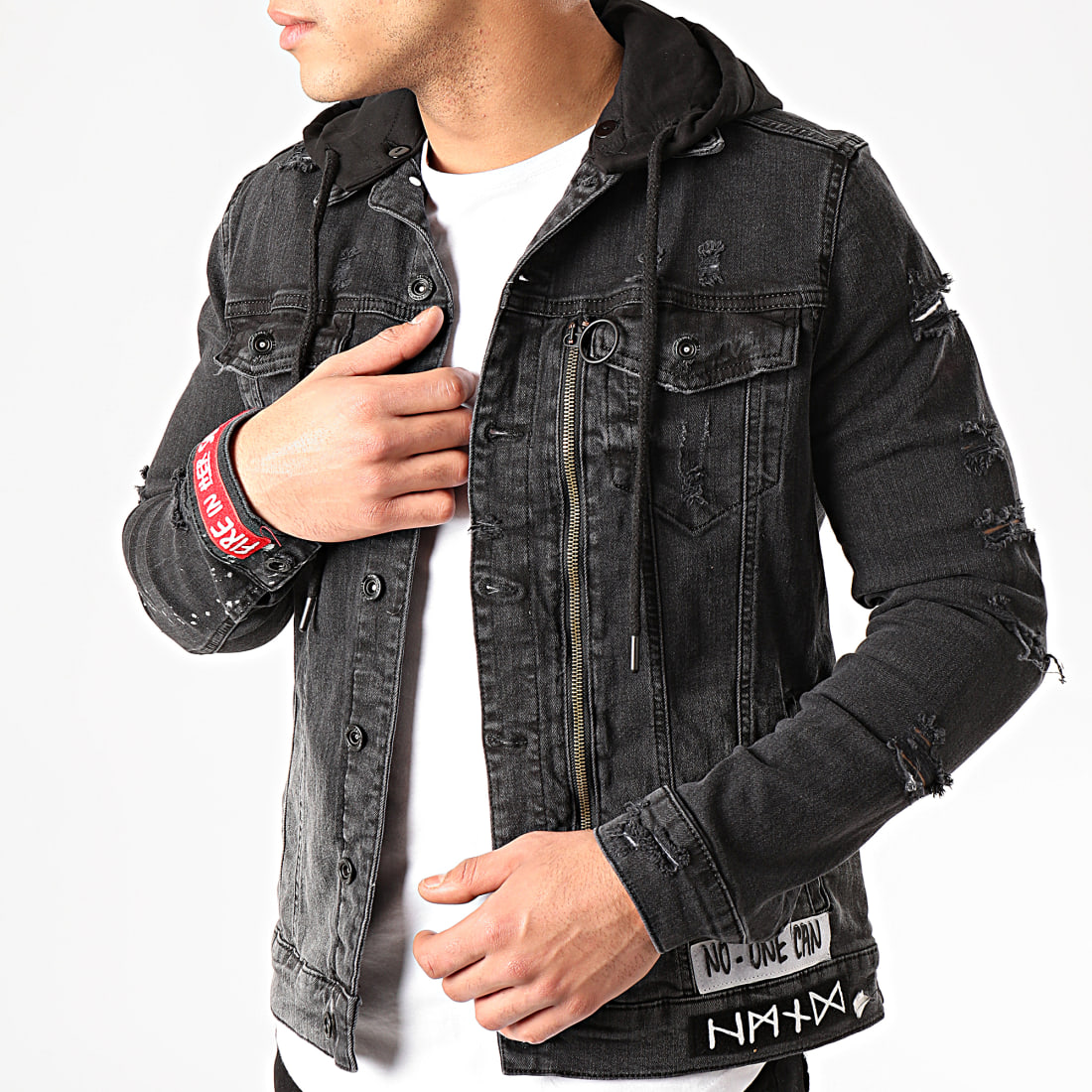veste jean noir capuche