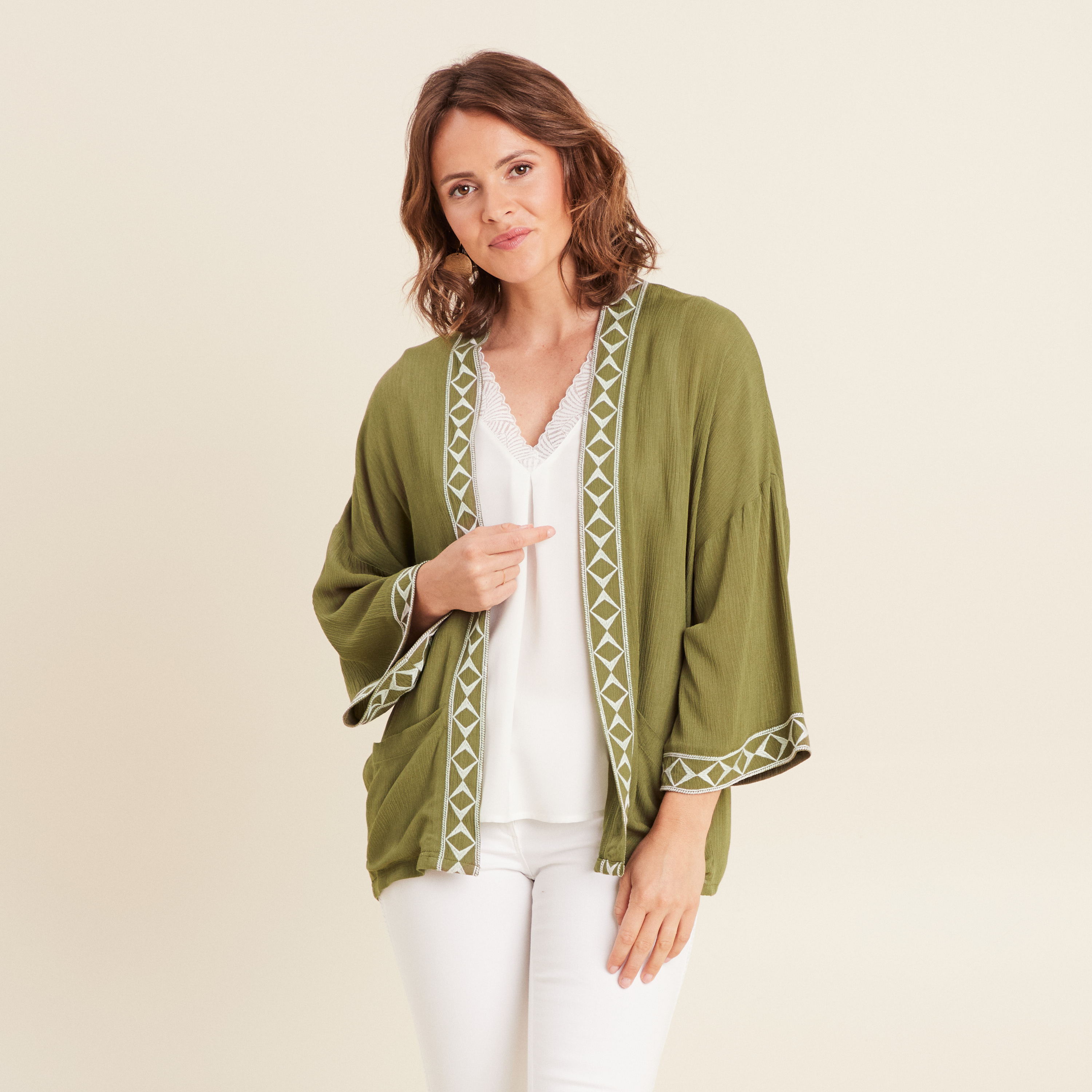 veste kaki femme brodee