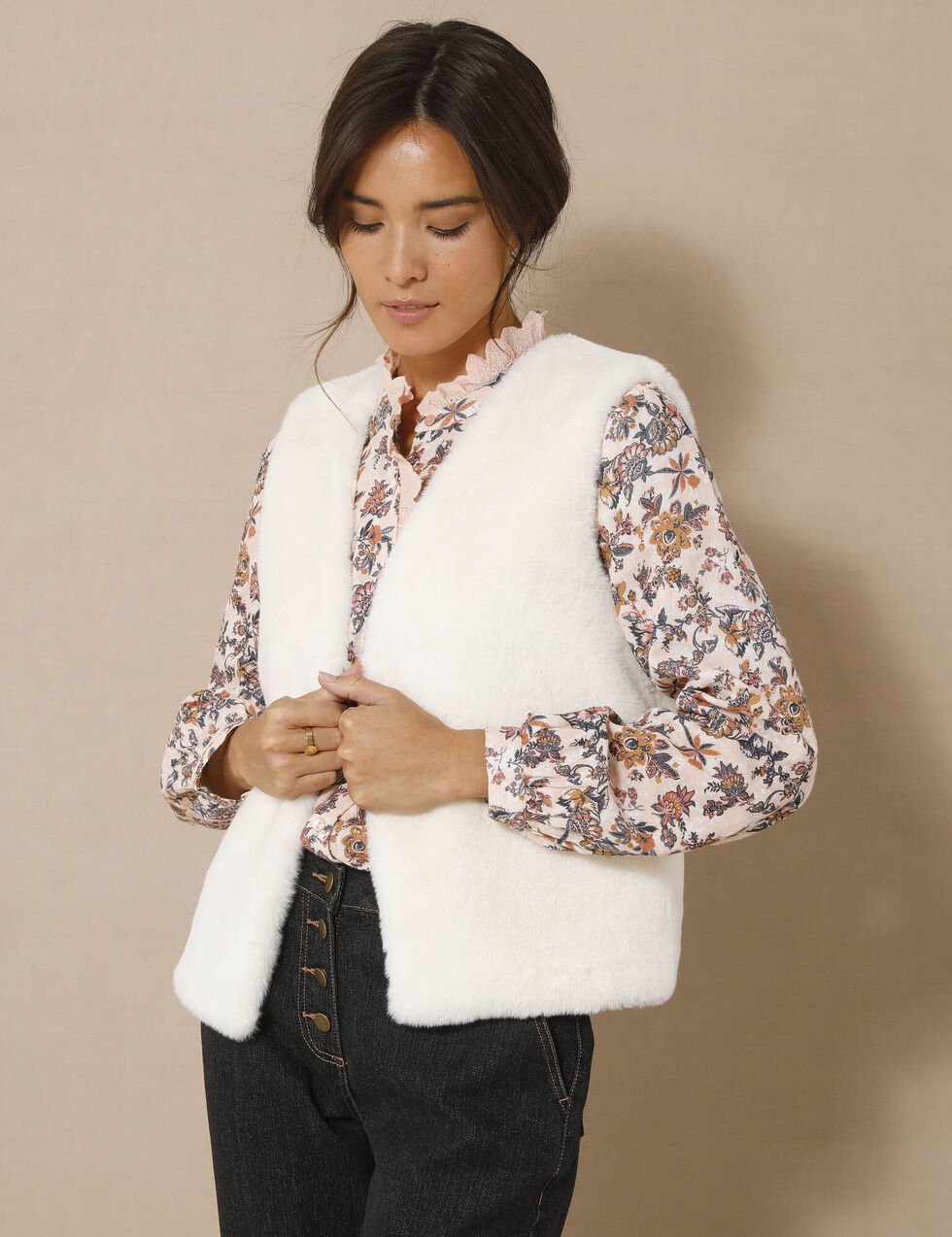 veste sans manche fourrure capuche