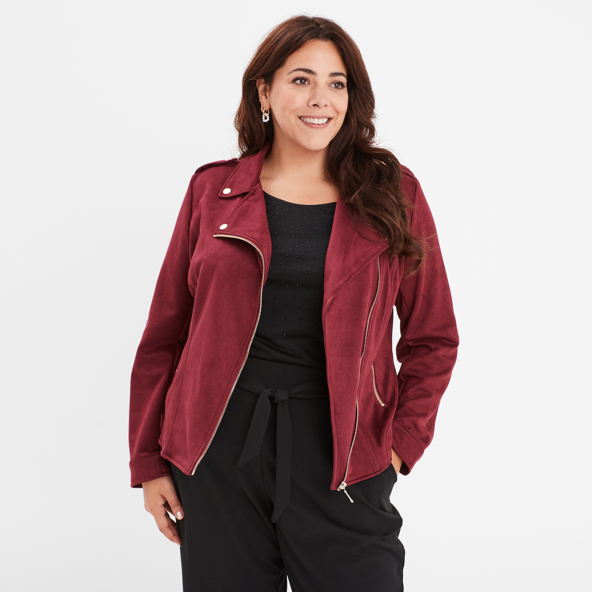 veste suedine bordeaux femme