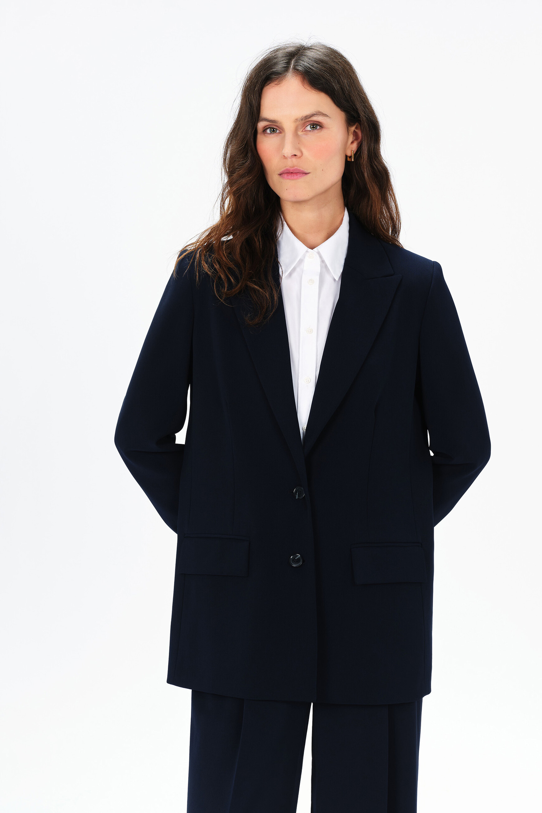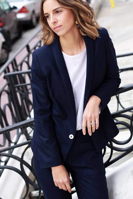 veste tailleur longue bleu marine femme