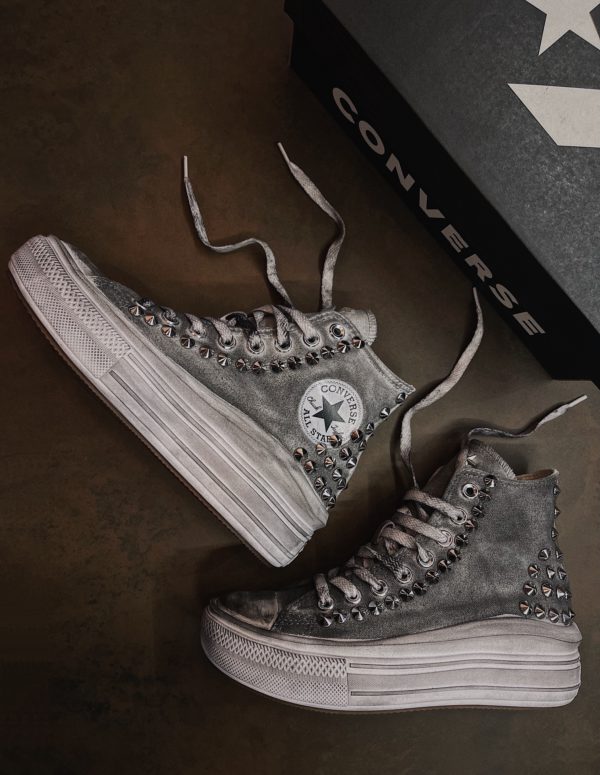 converse ltd platform grey heel borchie argento
