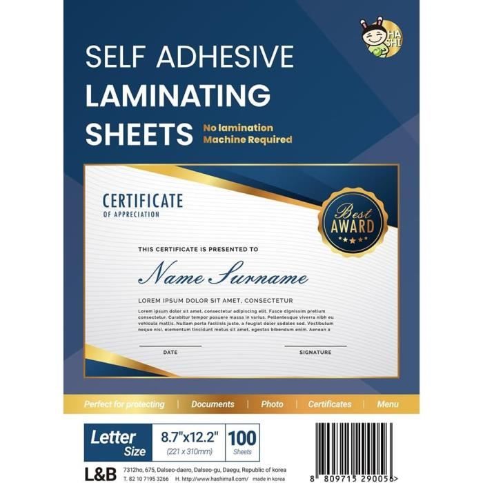 feuille a plastifier autocollante