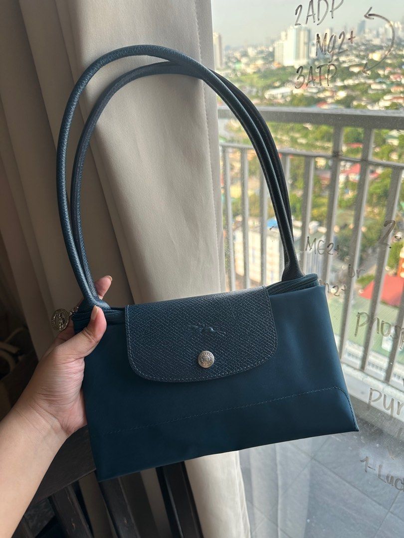 longchamp le pliage cuir navy