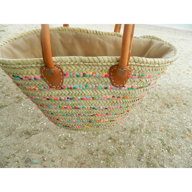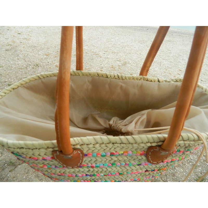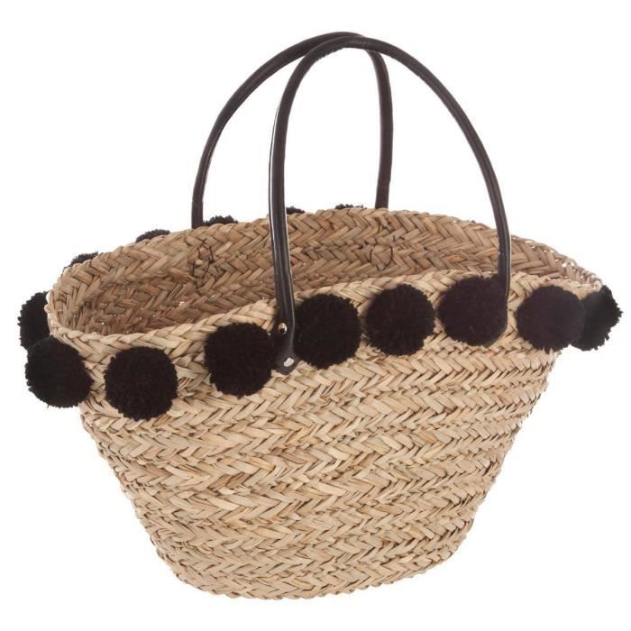 panier osier plage pompon
