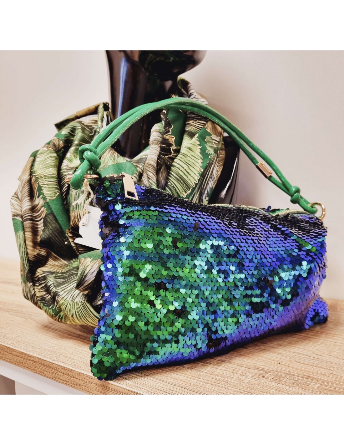 pochette bleu vert