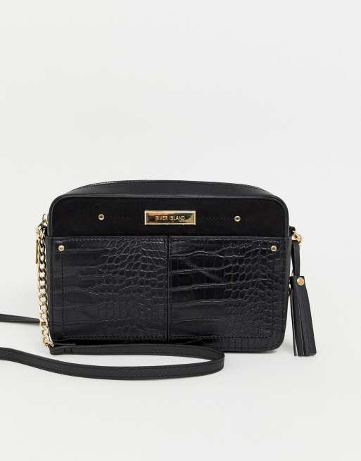 sac bandouliere noir effet croco